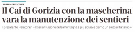 In evidenza oggi 3 giugno 2020 sul quotidiano il IL PICCOLO di Gorizia, un’articolo sulla ripresa dell’attività della Sezione CAI di Gorizia.