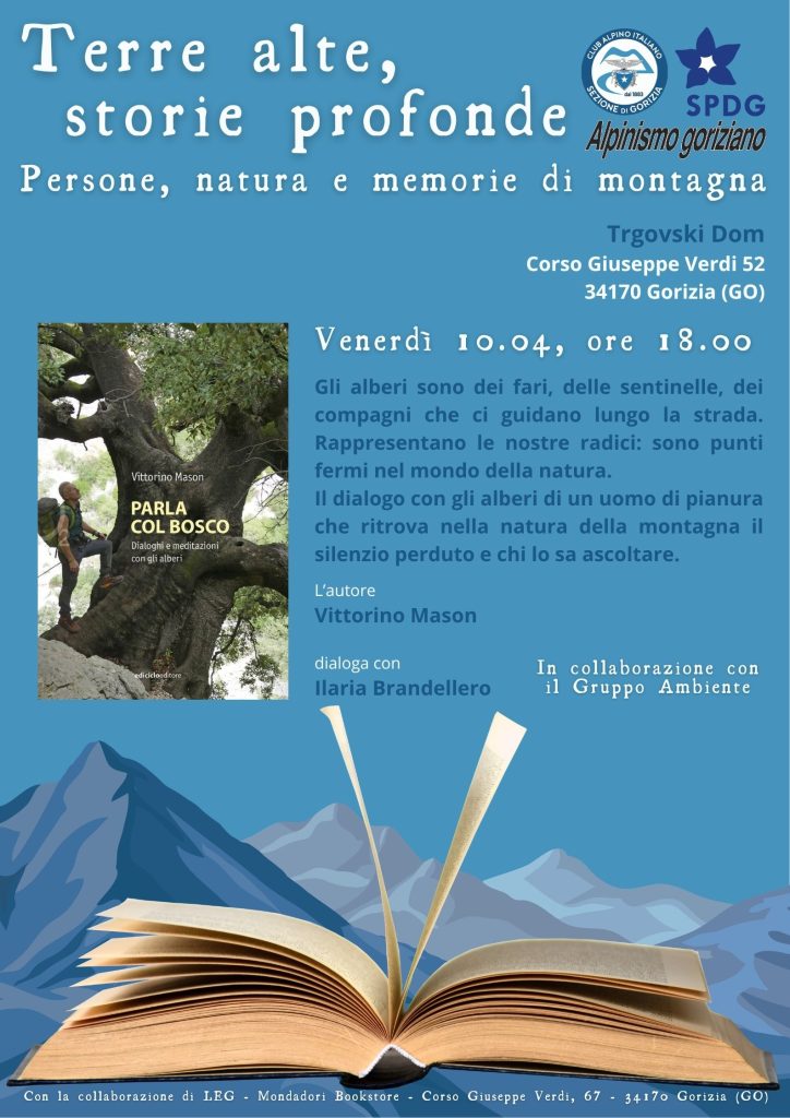 Si terrà il 10 aprile alle 18 al Trgovski Dom di Corso Giuseppe Verdi 52 a Gorizia il terzo incontro della rassegna “Terre alte, storie profonde. Persone, natura e memorie di montagna”, un percorso tra parole e paesaggi che mette al centro il racconto della montagna come spazio di memoria, identità e relazione organizzato da Club Alpino Italiano – Sezione di Gorizia APS, SPDG e Alpinismo Goriziano.