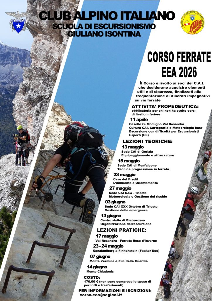 La S.E.G.I. – Scuola di Escursionismo Giuliano Isontina organizza nel periodo primavera/estate 2026 il corso Ferrate EEA.
