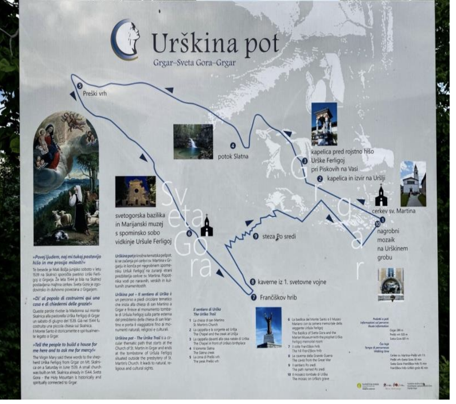 Il Gruppo Seniores organizza, in sostituzione di quella prevista in calendario,  un’escursione con percorso ad anello che ci porterà dal centro del paese di Gargaro (SLO) all’inizio del sentiero “Urskina Pot” dedicato alla pastorella Ursula Ferligoj che ebbe la visione della Madonna sulla cima del monte Skalnica. Quindi al Franciskov hrib, (cima di San Francesco), con un notevole  panorama sottostante, la chiesa di Monte Santo (m 681 di quota) e quindi sul Vodice.